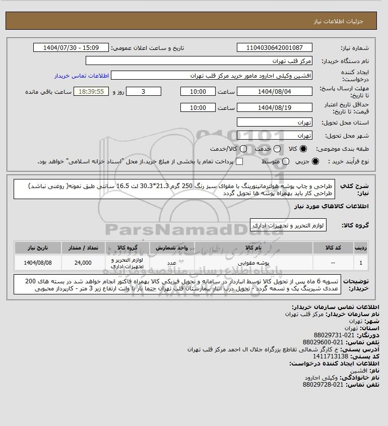 نام دستگاه خریدار:مرکز قلب تهران
