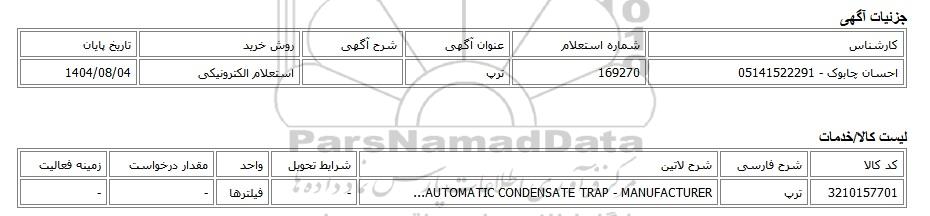 احسان چابوک - 05141522291169270ترپاستعلام الکترونیکی1404/08/04
