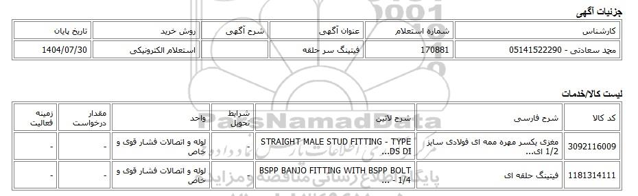محمد سعادتی - 05141522290170881فیتینگ سر حلقهاستعلام الکترونیکی1404/07/30