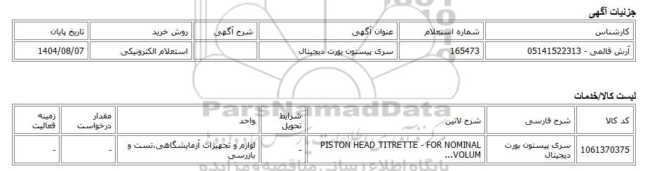 | آرش قائمی - 05141522313 | 165473 | سری پیستون بورت دیجیتال | استعلام الکترونیکی | 1404/08/07 |