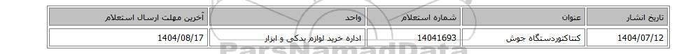 | 1404/07/12 | کنتاکتوردستگاه جوش | 14041693 | اداره خرید لوازم یدکی و ابزار | 1404/08/17 |
