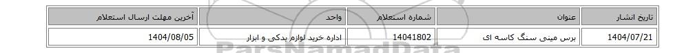 | 1404/07/21 | برس مینی سنگ کاسه ای | 14041802 | اداره خرید لوازم یدکی و ابزار | 1404/08/05 |