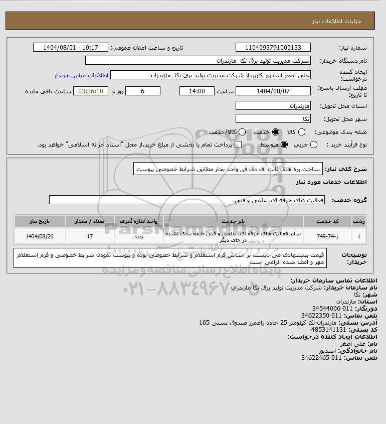نام دستگاه خریدار:شرکت مدیریت تولید برق نکا مازندران