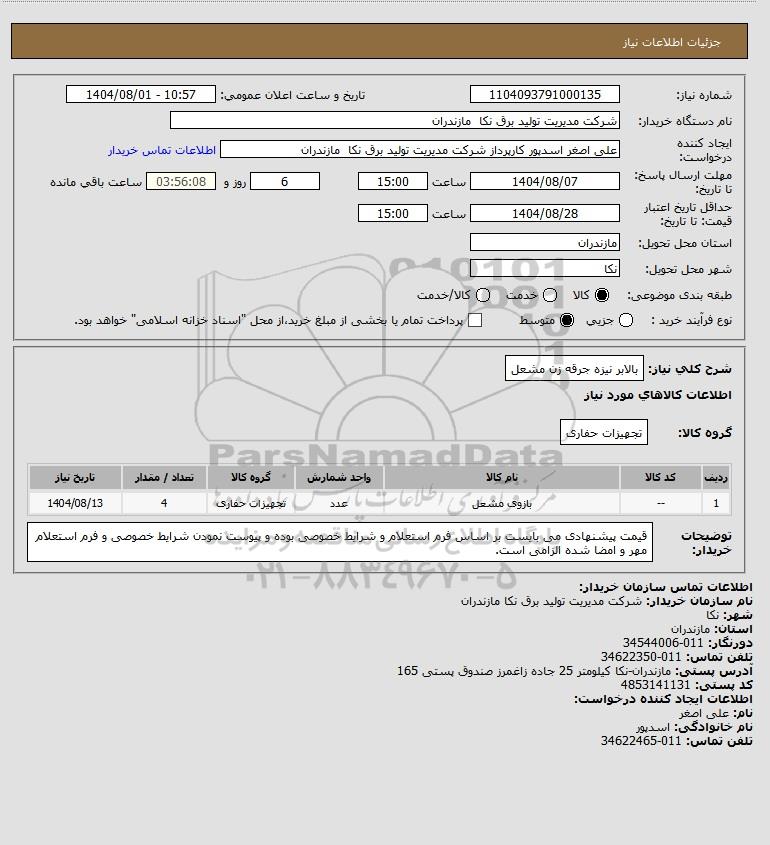 نام دستگاه خریدار:شرکت مدیریت تولید برق نکا مازندران