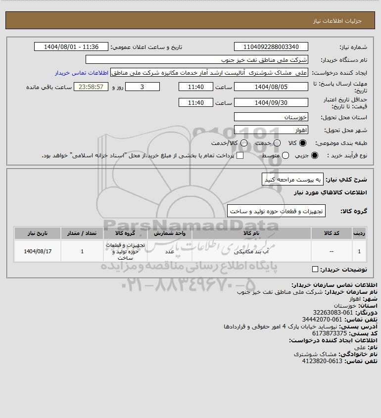 نام دستگاه خریدار:شرکت ملی مناطق نفت خیز جنوب