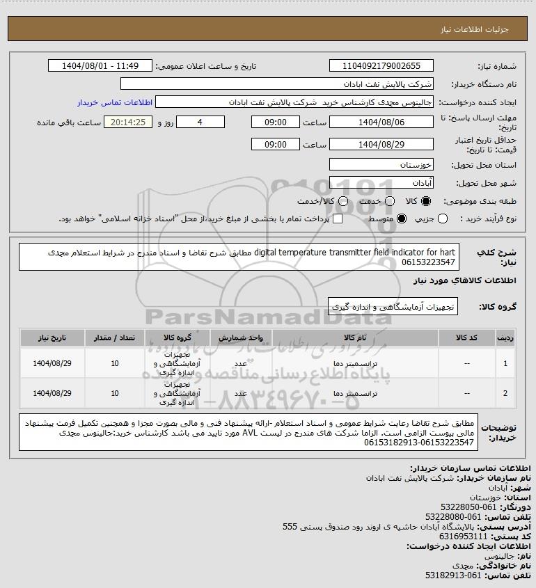 استعلام digital temperature transmitter field indicator for hart مطابق شرح تقاضا و اسناد مندرج در شرایط استعلام محمدی 06153223547, استعلام digital temperature transmitter field indicator for hart مطابق شرح تقاضا و اسناد مندرج در شرایط استعلام محمدی 06153223547