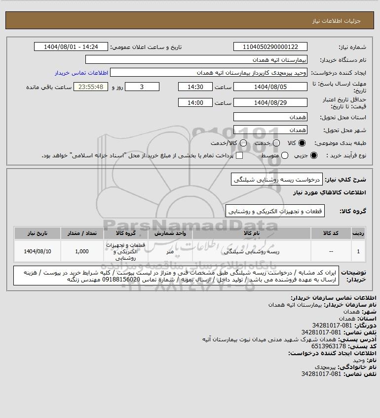 شرح کلی نیاز: درخواست ریسه روشنایی شیلنگی