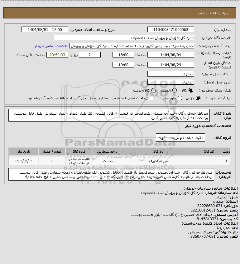 نام دستگاه خریدار:اداره کل اموزش و پرورش استان اصفهان