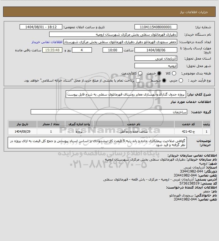 شرح کلی نیاز: پروژه جدول گذاری و بهسازی معابر روستای قهرمانلوی سفلی به شرح فایل پیوست