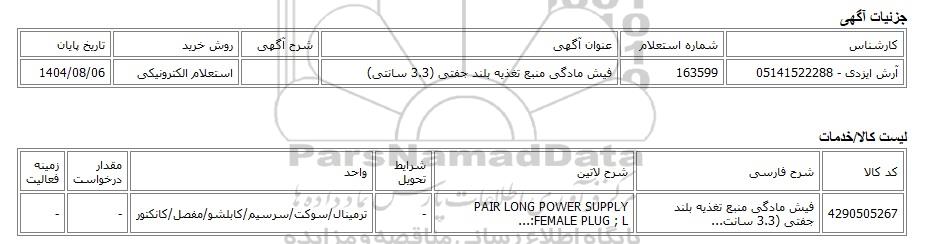 آرش ایزدی - 05141522288163599فیش مادگی منبع تغذیه بلند جفتی (3.3 سانتی)استعلام الکترونیکی1404/08/06