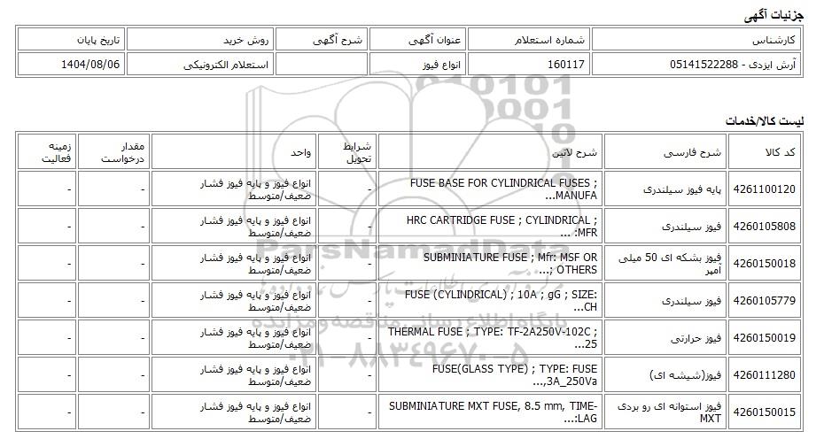 آرش ایزدی - 05141522288160117انواع فیوزاستعلام الکترونیکی1404/08/06