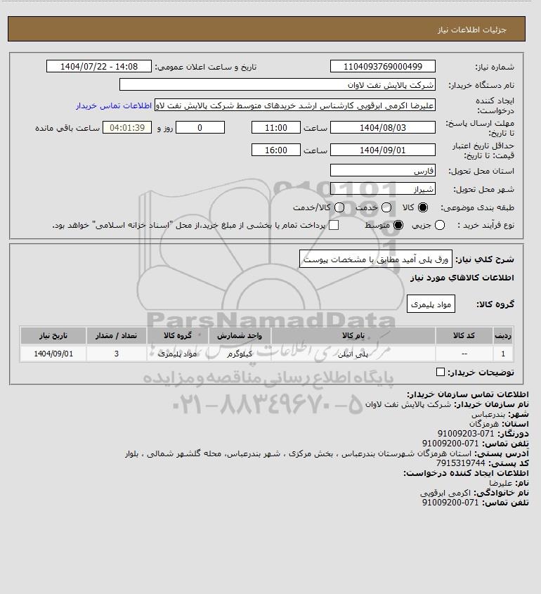 نام دستگاه خریدار:شرکت پالایش نفت لاوان