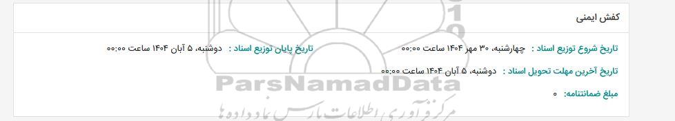 تاریخ آخرین مهلت تحویل اسناد: دوشنبه، 5 آبان 1404 ساعت 00:00