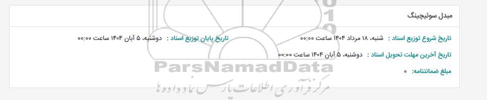 نحوه دریافت اسناد و ارسال پیشنهاد: متقاضیان میتوانند با ثبت نام در سامانه مناقصات و مزایدات ایران (پارس نماد) نسبت به مشاهده اسناد استعلام، دریافت اطلاعات تکمیلی، و ثبت پیشنهاد قیمت خود اقدام نمایند. در صورت نیاز به دریافت راهنمایی یا پشتیبانی در خصوص استعلام و مناقصه و فراخوان مناقصه عمومی، مناقصه محدود، مناقصه بین المللی، مناقصه دولتی، مناقصه خصوصی، مناقصه آنلاین فروش تجهیزات، مناقصه مشاورهای مناقصه پتروشیمی و انرژی مناقصه صنایع و تجهیزات برق و مخابرات و نفت و گاز ... لطفاً با سایت خبری مناقصه و مزایده پارسنماد دادهها به شماره 88349670 تماس حاصل فرمایید.