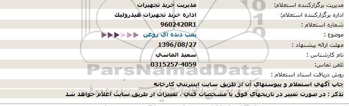 اداره برگزارکننده استعلام: اداره خرید تجهیزات هیدرولیک