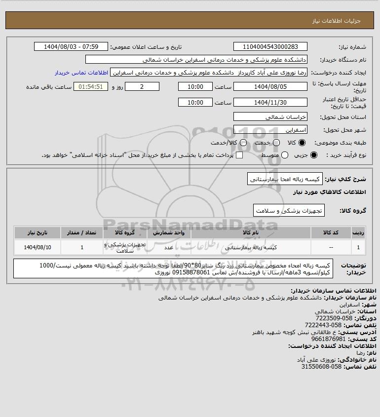 نام سازمان خریدار: دانشکده علوم پزشکی و خدمات درمانی اسفراین خراسان شمالی