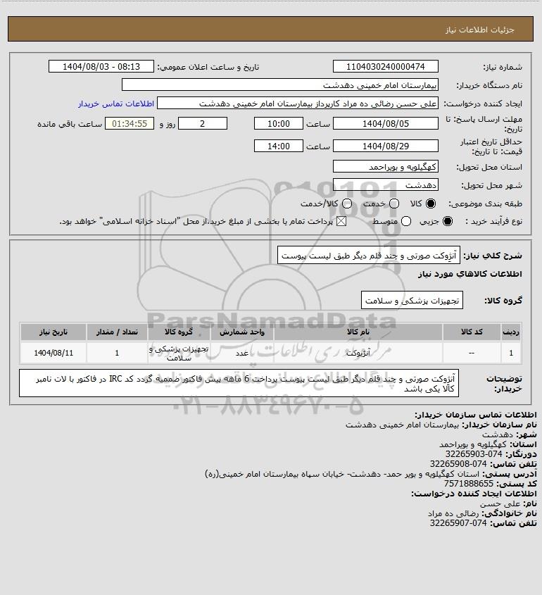 نام دستگاه خریدار:بیمارستان امام خمینی دهدشت