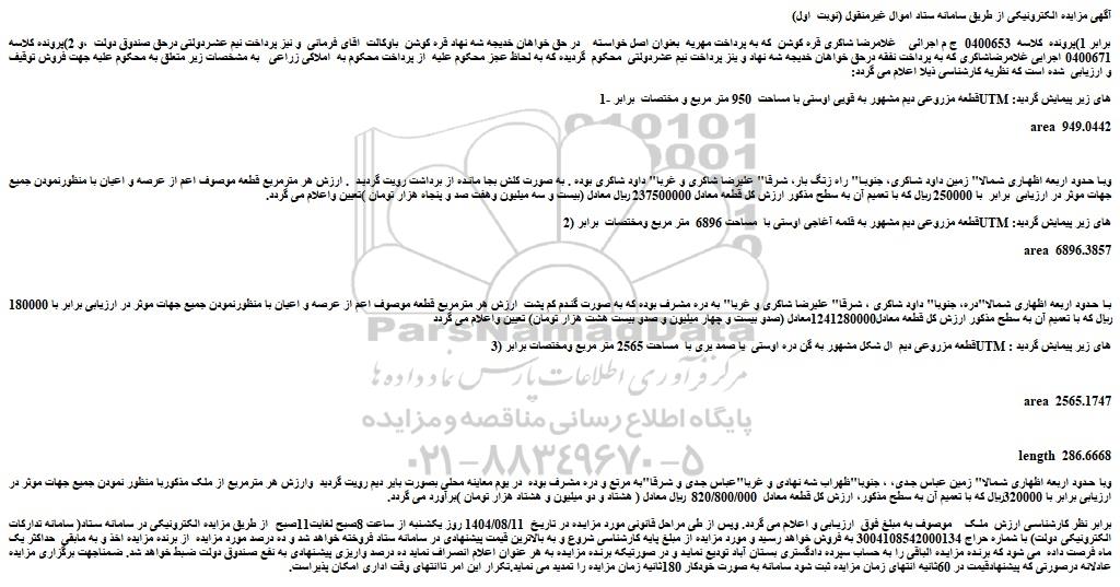 آگهی مزایده الکترونیکی از طریق سامانه ستاد اموال غیرمنقول (نوبت اول)