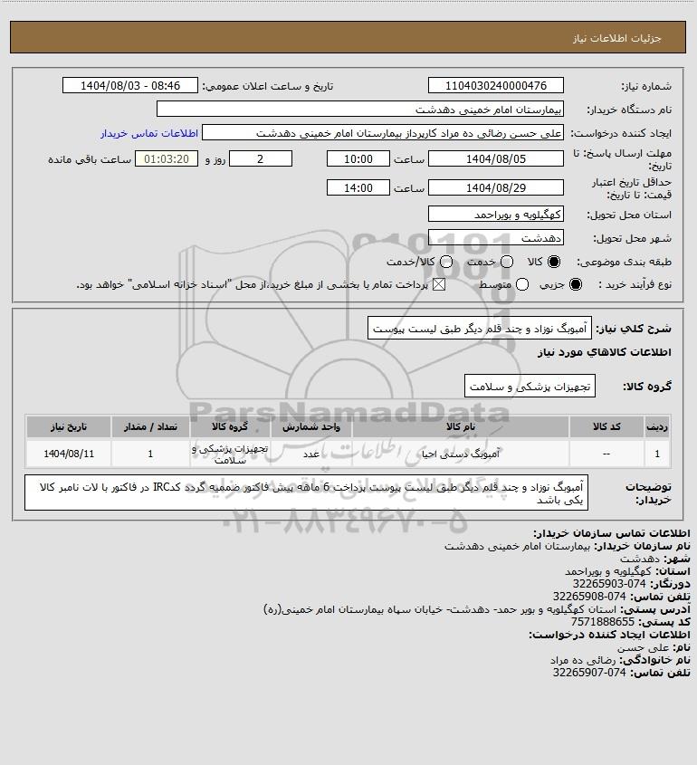 نام دستگاه خریدار:بیمارستان امام خمینی دهدشت