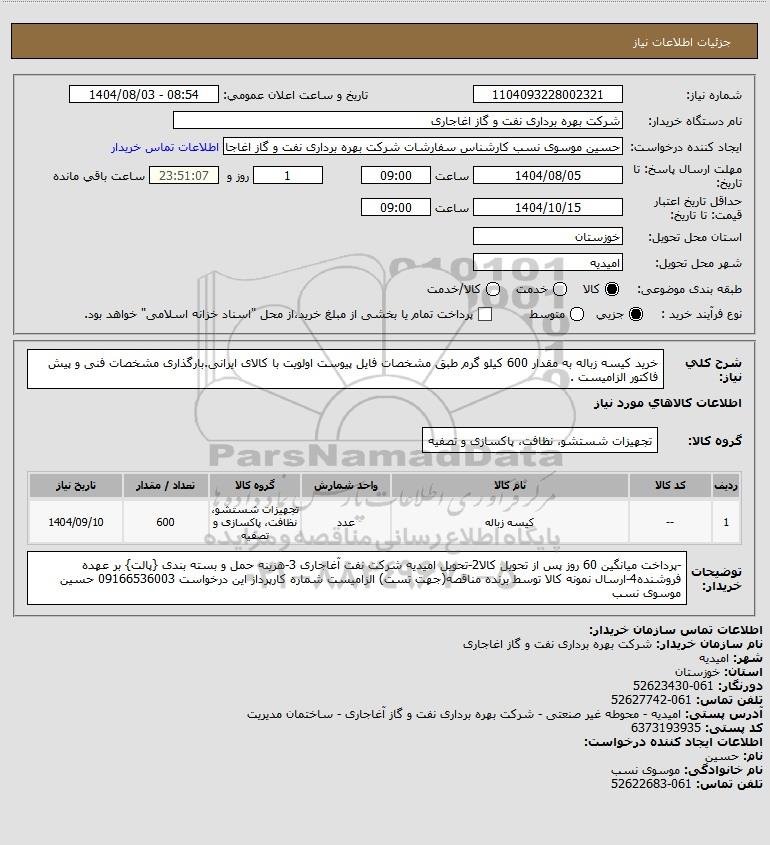 نام سازمان خریدار: شرکت بهره برداری نفت و گاز اغاجاری
