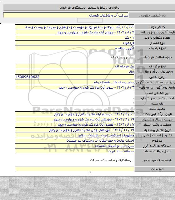 این مناقصه در تاریخ 1404/08/03 شروع و مهلت آن تا تاریخ 1404/08/07 میباشد.