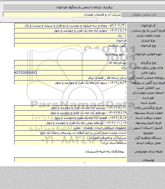 برای شرکت در مناقصه حتما از تصویر آگهی در سایت پارس نماد داده ها استفاده نمایید