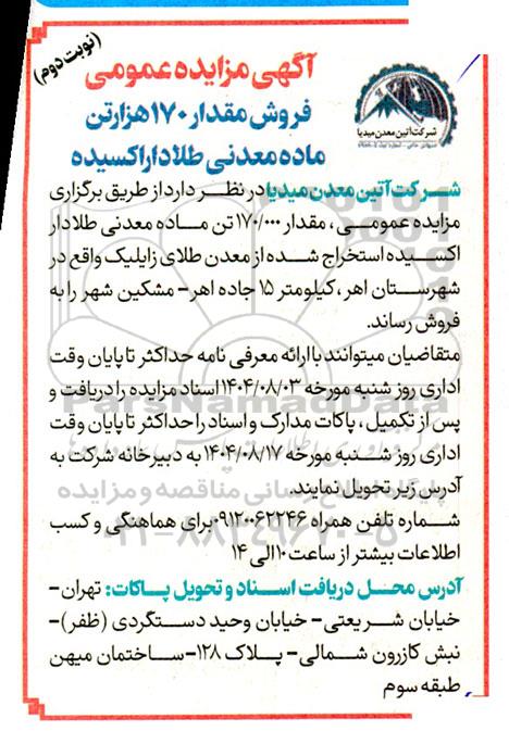 آگهی مزایده عمومی فروش حدود 170 هزارتن ماده معدنی اکسیده طلادار