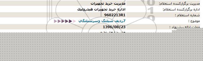 اداره برگزارکننده استعلام: اداره خرید تجهیزات هیدرولیک