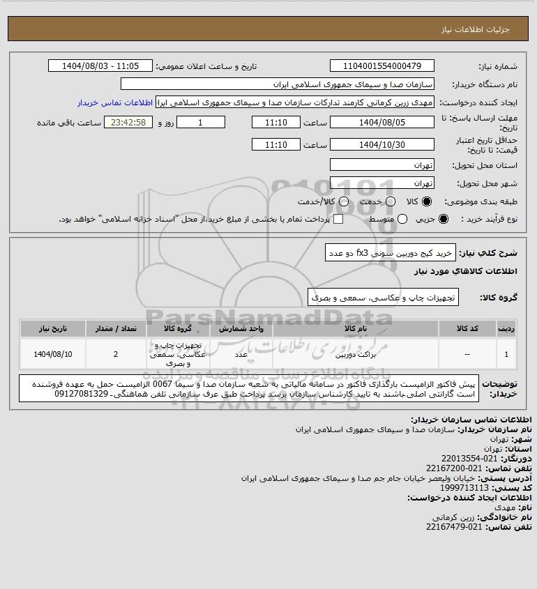 نام دستگاه خریدار:سازمان صدا و سیمای جمهوری اسلامی ایران