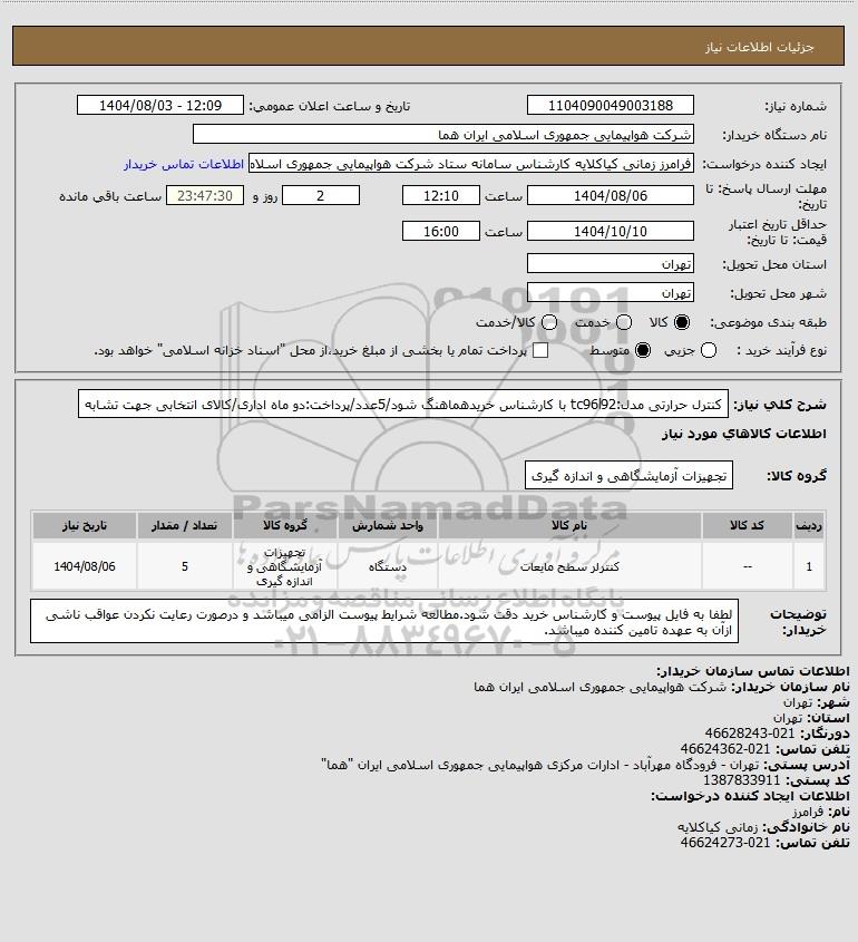 نام دستگاه خریدار:شرکت هواپیمایی جمهوری اسلامی ایران هما
