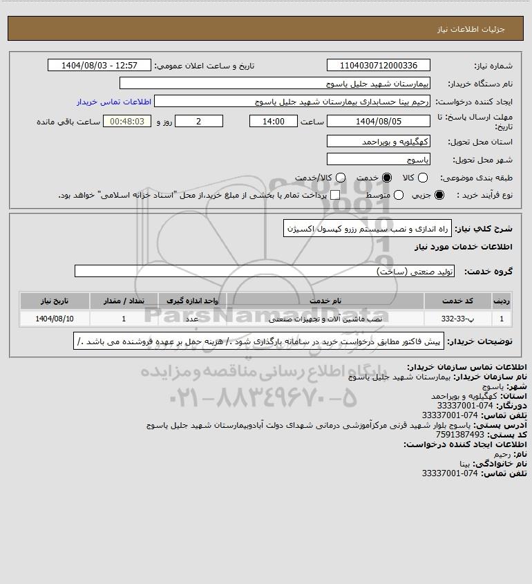 نام دستگاه خریدار:بیمارستان شهید جلیل یاسوج