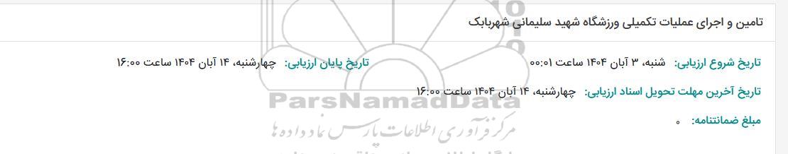 تاریخ آخرین مهلت تحویل اسناد ارزیابی: چهارشنبه 14 آبان 1404 ساعت 16:00