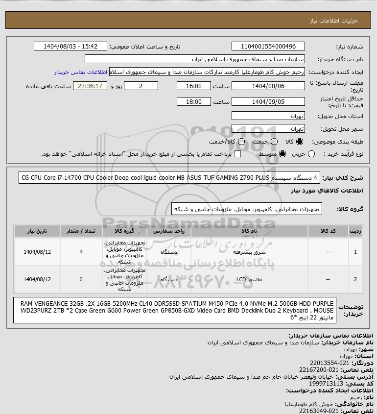 نام دستگاه خریدار:سازمان صدا و سیمای جمهوری اسلامی ایران