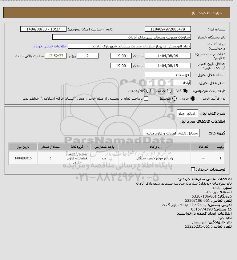 نام دستگاه خریدار:سازمان مدیریت پسماند شهرداری آبادان