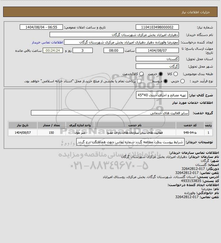 نام دستگاه خریدار:دهیاری امیراباد بخش مرکزی شهرستان گرگان