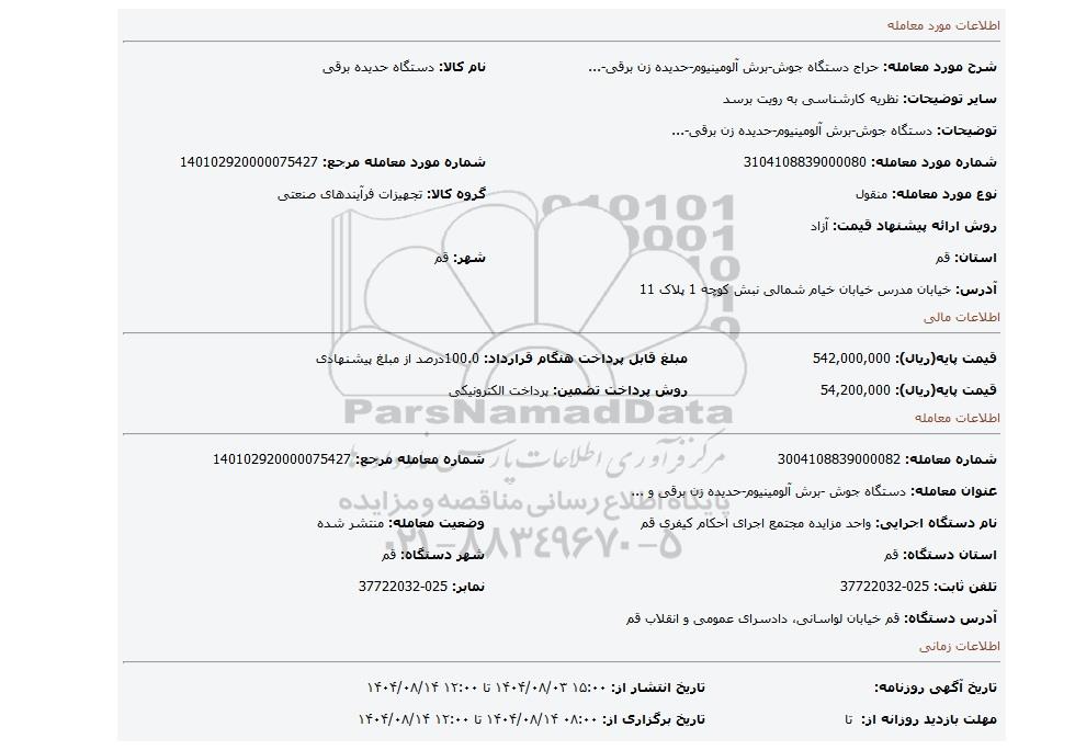 مزایده، دستگاه جوش-برش آلومینیوم-حدیده زن برقی-...
