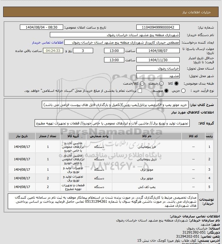 نام دستگاه خریدار:شهرداری منطقه پنج مشهد استان خراسان رضوی