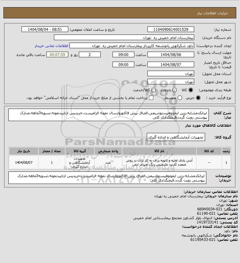 نام دستگاه خریدار:بیمارستان امام خمینی ره تهران