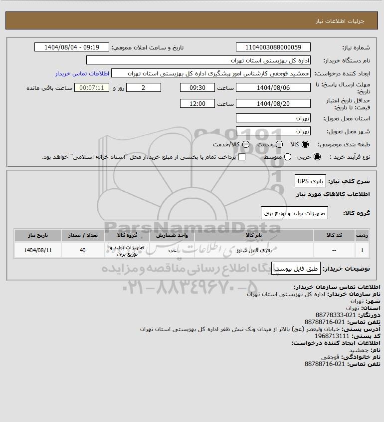 1 -- باتری قابل شارژ عدد تجهیزات تولید و توزیع برق 40 1404/08/11