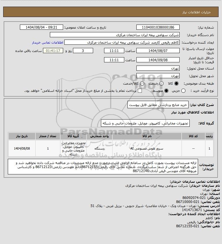 نام دستگاه خریدار:شرکت سهامی بیمه ایران ساختمان مرکزی