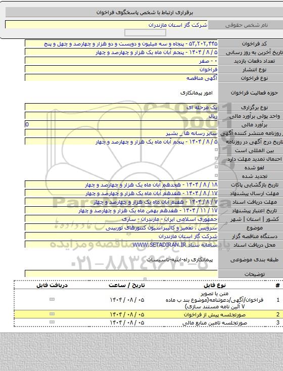 این مناقصه در استان مازندران با دسته بندی های صنفی و تخصصی ابزار دقیق, پیمانکاری نفت و گاز و پتروشیمی, کنتور گاز برگزار میشود.