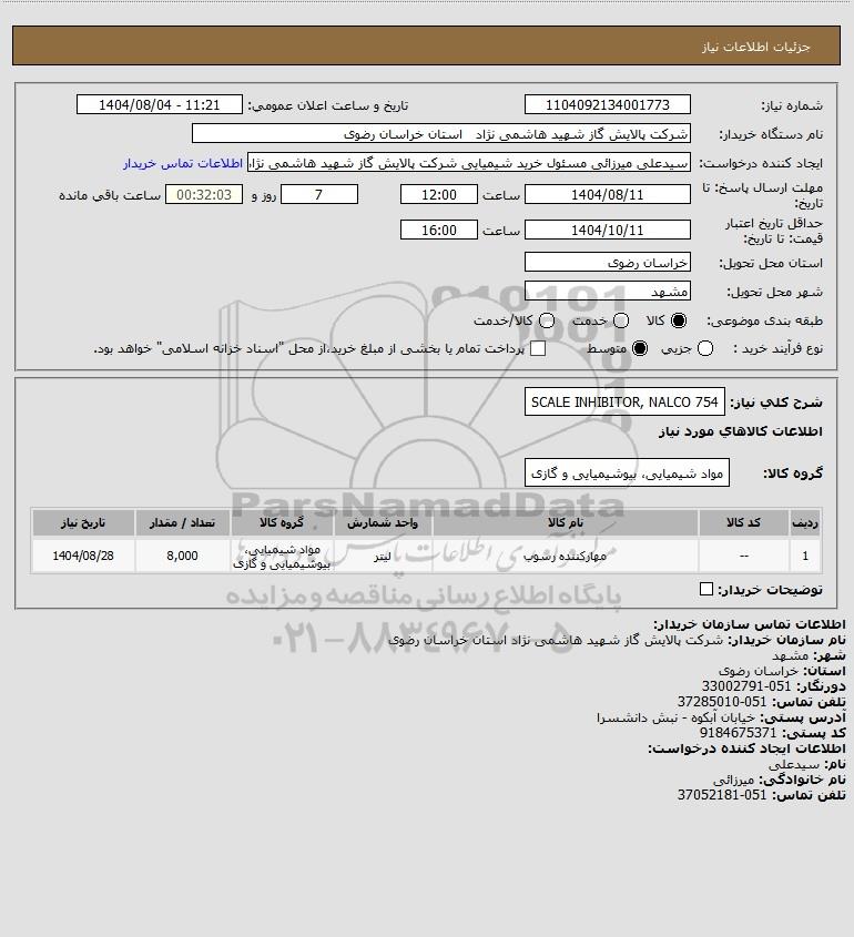 شرح کلی نیاز: SCALE INHIBITOR, NALCO 754