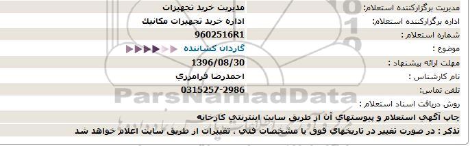 اداره برگزارکننده استعلام:  اداره خرید تجهیزات مکانیک