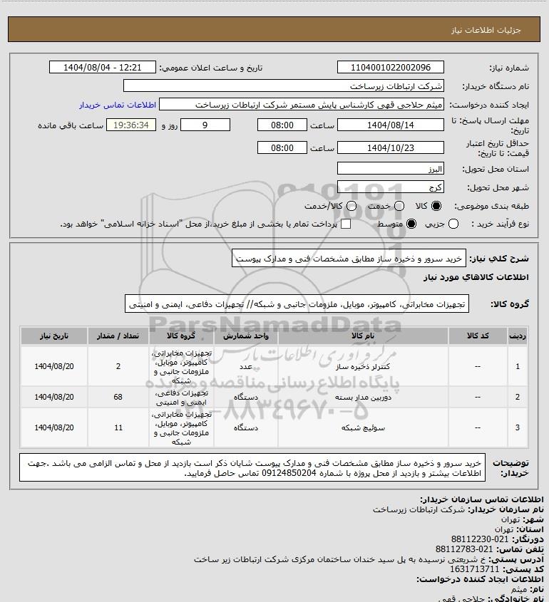 نام سازمان خریدار: شرکت ارتباطات زیرساخت