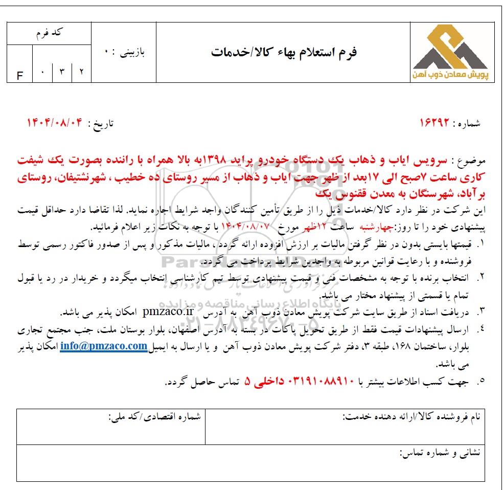1 استعلام به کار گیری راننده با خودرو شخصی طبق ضوابط پیوست 9755081 1404/08/04 new not special not payed خراسان رضوی