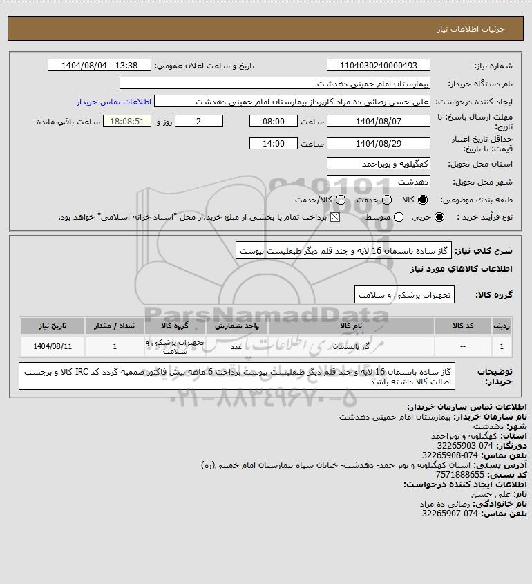 شرح کلی نیاز: گاز ساده پانسمان 16 لایه و چند قلم دیگر طبقلیست پیوست