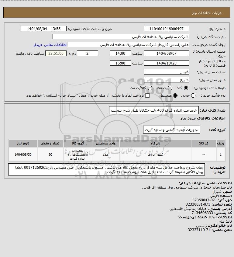 شرح کلی نیاز: خرید میتر اندازه گیری 400 ولت -B821 طبق شرح پیوست