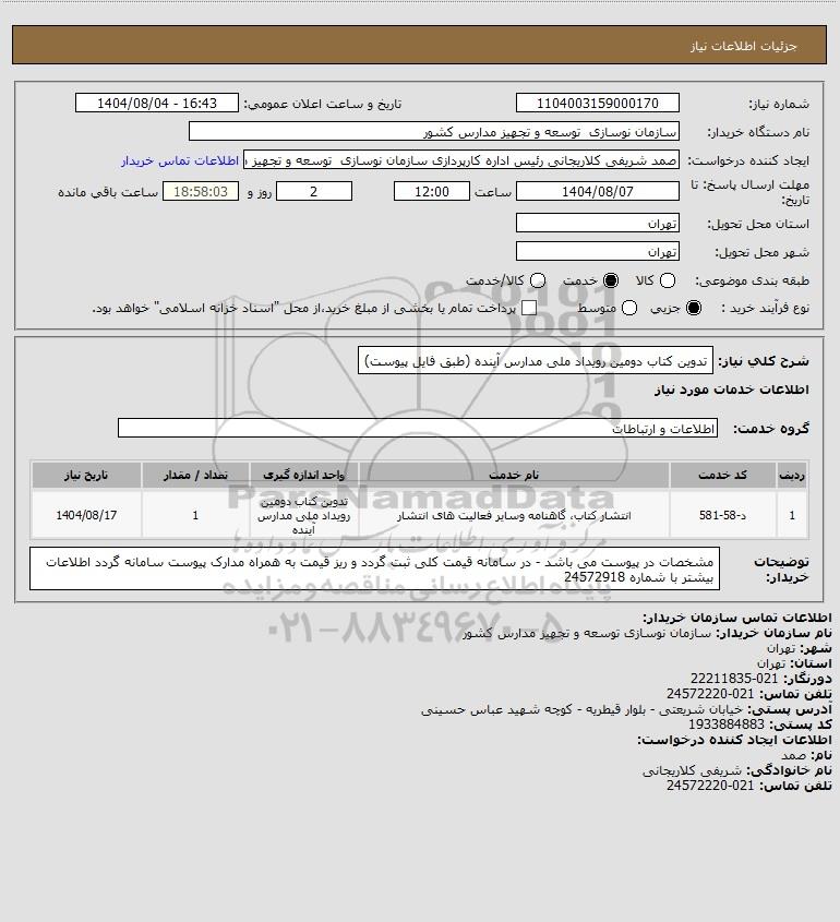 شرح کلی نیاز: تدوین کتاب دومین رویداد ملی مدارس آینده (طبق فایل پیوست)