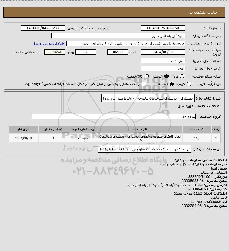 نام دستگاه خریدار:اداره کل راه اهن جنوب