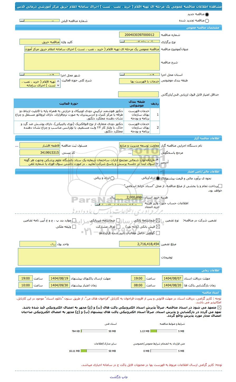 | شماره مناقصه | 2004030397000012 | |||||||||||